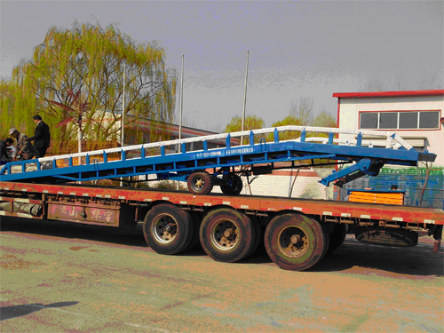 沙特客戶訂做移動式登車橋發(fā)貨。客戶選訂的帶支腿式移動式10T登車橋